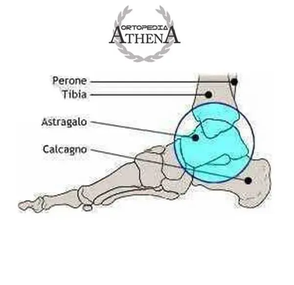 L'astragalo non è situato direttamente sul calcagno ma risiede parzialmente nella parte mediale dell'asse del calcagno e spostato più avanti di questo osso.